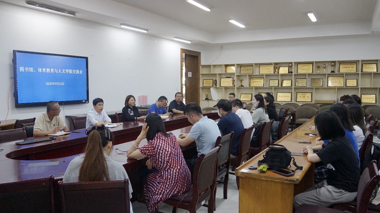 为贯彻落实校党委融合发展、高质量发展等战略部署,凝心聚力,整合资源,共谋发展。9月24日下午体育教育与人文学院在教学办公楼115会议室召开了与信息化中心、图书馆的交流会议。信息化中心、图书馆与体育教育与人文学院的教师及学生代表出席了本次会议,会议由体育教育与人文学院副院长叶强主持。