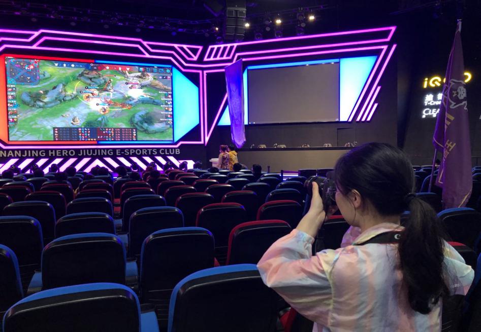 第二天早晨,实习生们在学长的带领下前往红枫科技馆,在和Hero久竞的活动负责人孙女士交谈后,再次明确了整个活动流程与任务。活动开始前,四名实习生便进入场地寻找拍摄位置,并将六支战队的抽签过程与主持人、解说的赛前准备记录下来。活动开始时,三名实习生分别站在三个方位记录整个活动,战队选手、主持人、解说、观众与工作人员都被实习生记录在了相机中,他们为胜利鼓掌,他们为失败惋惜,他们或激动或平静或快乐或失望,都在五个小时的漫长又紧张的赛事后,留在了实习生们拍摄到的每一张照片与每一段视频里,成为一段弥足珍贵的赛场记忆。