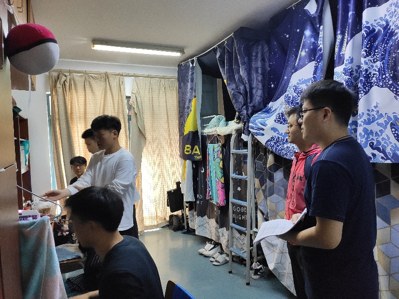 通过检查发现绝大部分宿舍卫生状况良好,能够做到被褥衣物叠放整齐,地面、桌面干净整洁,出门关好门窗和关闭电源,自我安全保护和防范意识有所提高;但仍有部分宿舍人走门不锁、衣物乱放、人离开电脑仍在充电等安全隐患,存在用电、卫生等安全意识不强等现象。