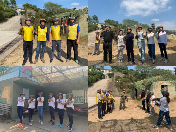 参观结束后,大家换上红军装,拍着整齐的队伍,雄赳赳,气昂昂,在大金山长征广场整装待发。讲解老师讲长征历史,跟着讲解老师朗诵毛主席诗词《七律·长征》并进行宣誓。在重走“长征路”活动中亲身体验了遵义会议、四渡赤水、强渡大渡河、飞夺泸定桥、爬雪山、过草地等模拟场景,感受了红军历经千难万险的长征历程和胜利会师的喜悦。下午大家还纷纷体验了真人CS的对抗,在激烈对抗之余,还收获了团队合作的精神和友谊。