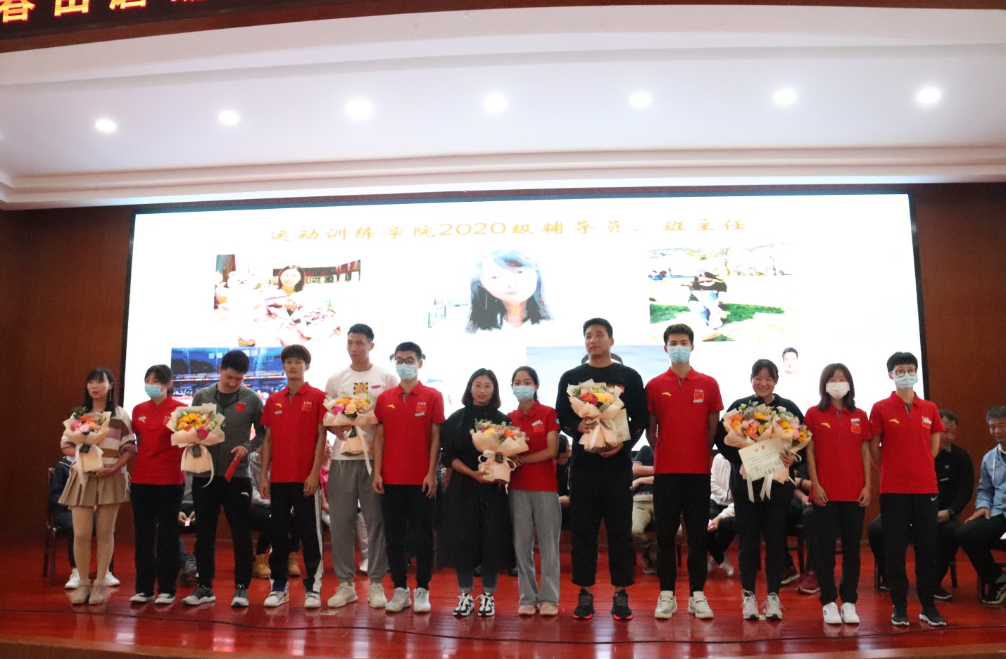 在2020级全体新生的见证下,运动训练学院举行了新生班主任聘任仪式。张明宣读学院关于聘任单志铭等六位老师为新生班主任的决定,喻菊分别为六位2020级新生班主任颁发聘书。新生代表向敬爱的班主任献上鲜花,并送上感激和充满期待的拥抱。