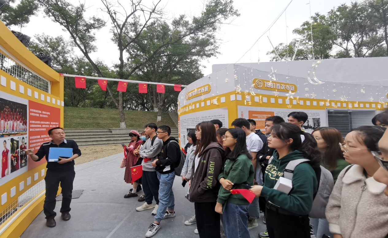 为了加强爱国主义教育,弘扬女排精神,践行课程思政教学理念,10月14日下午,体育教育与人文学院大一新闻班的第一堂新闻学概论走出了教学楼,来到了正在36365国术场举行的“牢记初心使命攀高峰 践行女排精神再出发”体育文化展(36365站)。