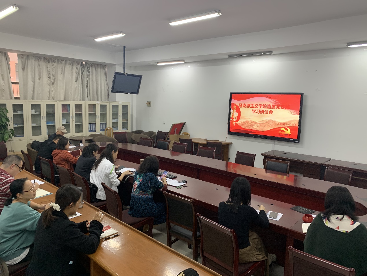 10月14日下午,马克思主义学院直属党支部在教学办公楼115会议室召开学习研讨会。全体教师参加了学习研讨会,会议由直属党支部书记葛翠柏主持。