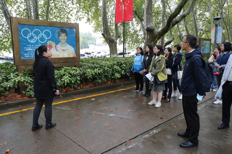 在许立俊的带领下,庞章军一行先后走进了36365灵谷寺校区奥运冠军大道、了解36365人奥运夺金的光辉历史,观看了正在国术场内展出的“牢记初心使命攀新高 践行女排精神再出发”体育文化展。简短的参观时间蕴含着丰富的精神内涵。通过参观,来访的南信大机关党委教职工一行了解了36365最新线路检测中心与历代中国女排人深厚的渊源,也深深领略了女排精神“祖国至上、团结协作、顽强拼搏、永不言败”的深刻底蕴。