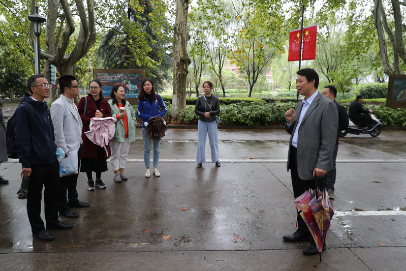 校党委常委、宣传部部长、统战部部长许立俊向到访宾客介绍校园文化建设概况