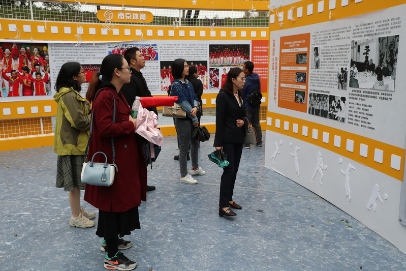 观看“牢记初心使命攀新高 践行女排精神再出发”体育文化展
