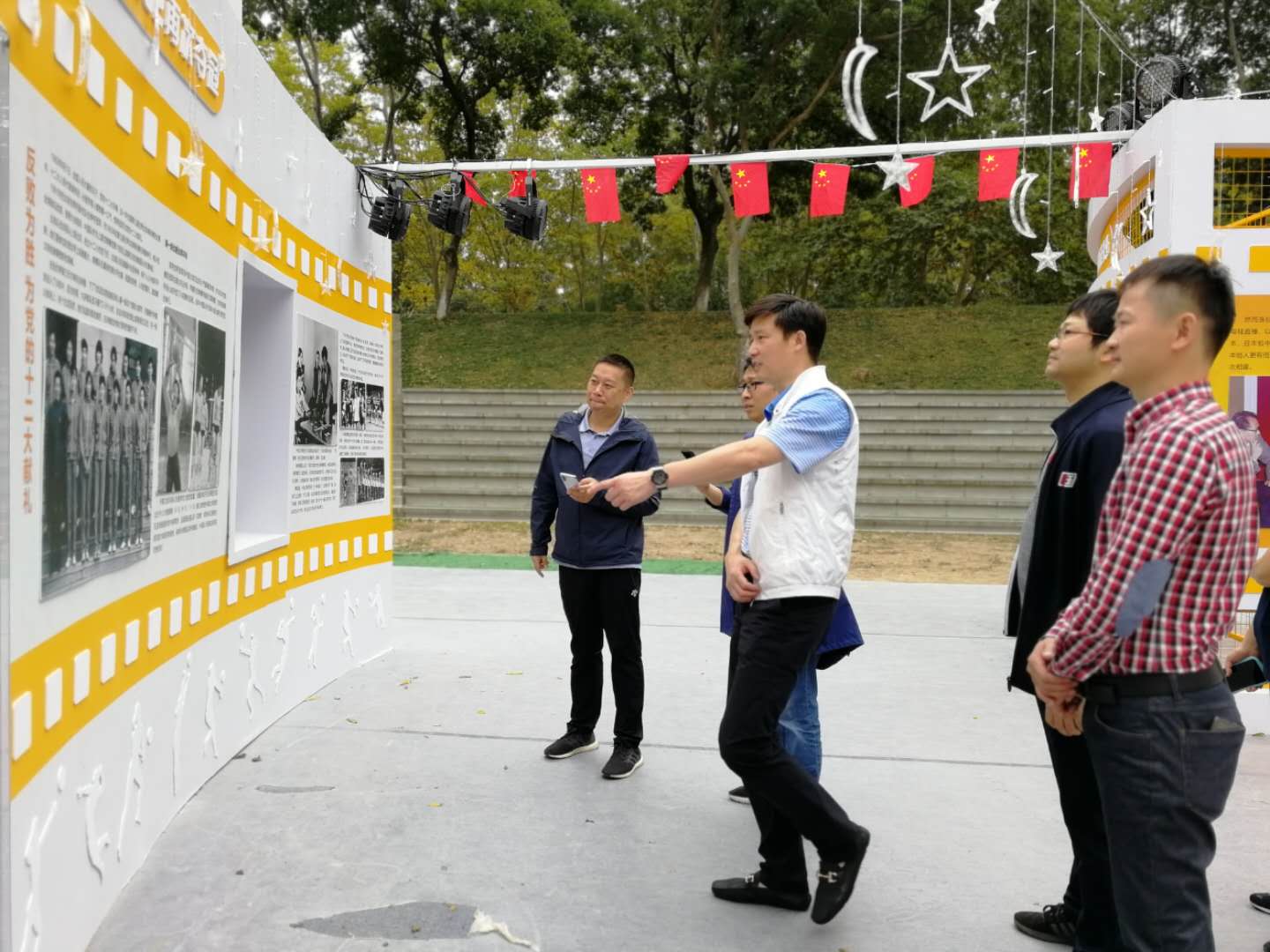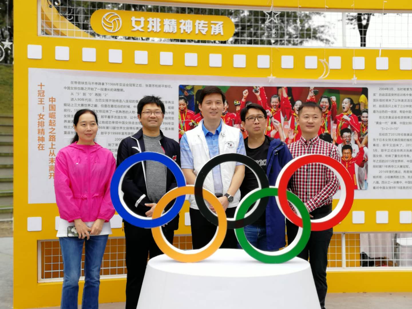 游泳学院党总支班子成员在体育文化展合影