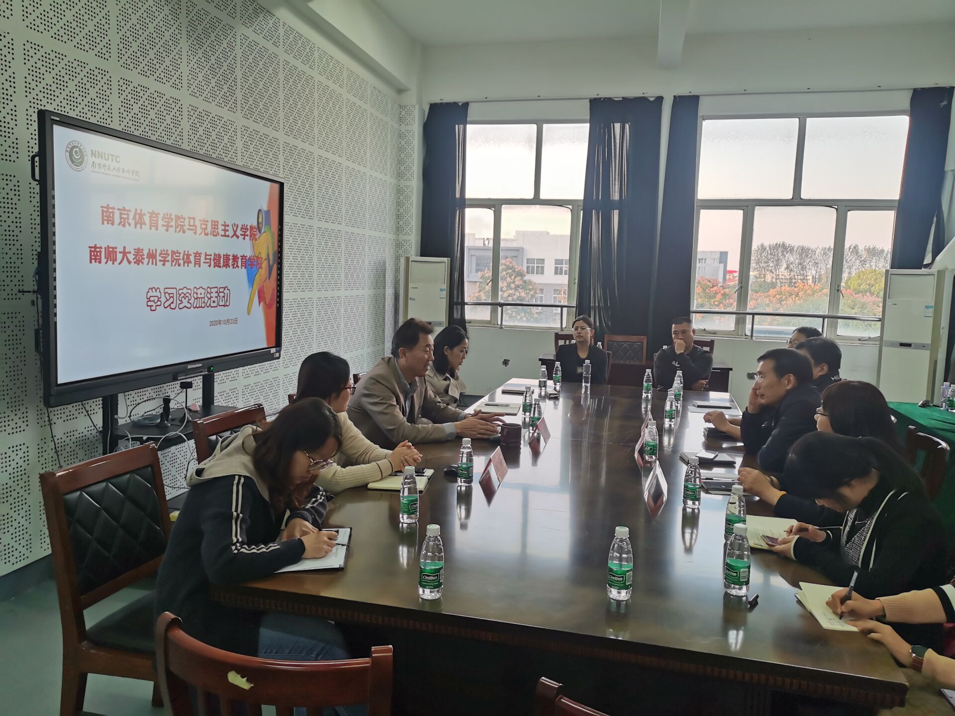为加强校际交流,增进合作,互相吸收和借鉴相关经验,10月24日马克思主义学院部分领导教师前往南京师范大学泰州学院体育与健康教育学院调研交流。体育与健康教育学院院长严海平和学院部分领导教师出席了座谈会,双方在党建工作、制度建设、课程思政等方面的做法和成功经验进行深入探讨,分享办学教学经验。
