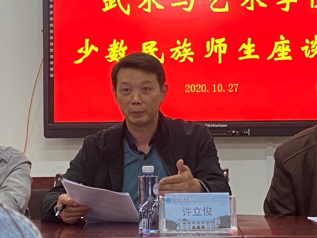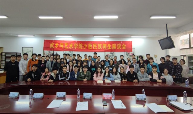 为落实立德树人根本任务,倾听我院少数民族学生的心声,进一步增强学生的归属感、获得感、成就感和幸福感,10月27日中午,武术与艺术学院在教学办公楼115会议室召开2020年少数民族师生座谈会。校党委常委、党委宣传部部长、党委统战部部长许立俊,后勤党总支书记顾道,学生工作部副部长杨晖,关工委秘书长孙加猛,校团委副书记杨蓉、武术与艺术学院全体领导班子成员与少数民族师生参加了此次会议。