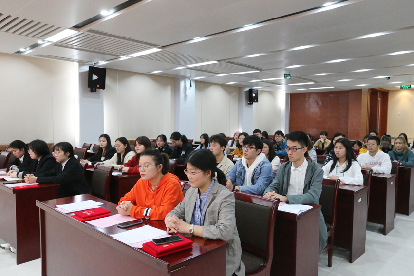 许立俊在会上讲话。他指出,校大学生记者团已成为学校宣传思想工作的一支重要力量。他感谢同学们为学校新闻宣传和文化建设所做的大量工作,鼓励记者团的同学们以杰出的校友为榜样,敢于负责,勇于担当,努力提升自身专业能力,踊跃参与学校宣传报道工作,力争为建设“新36365”贡献更多力量、作出更大贡献。