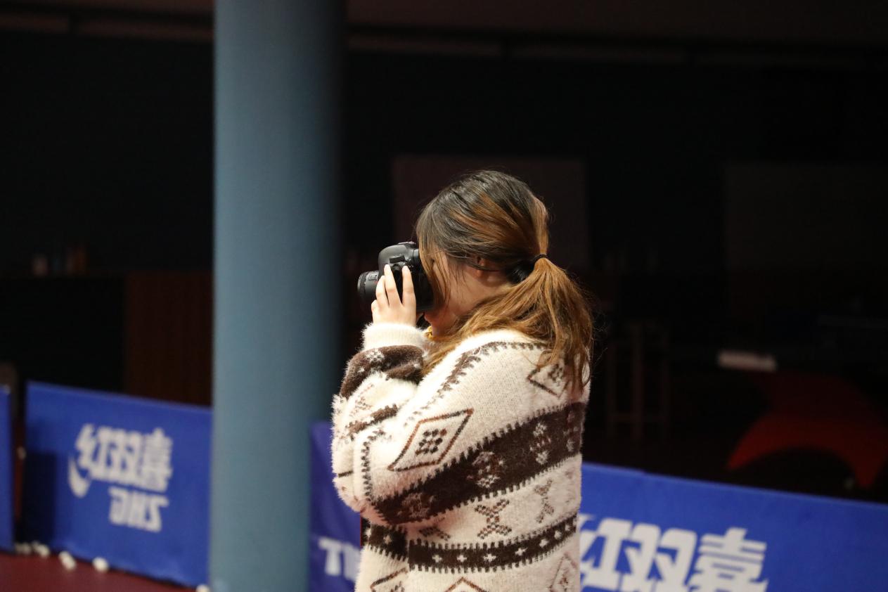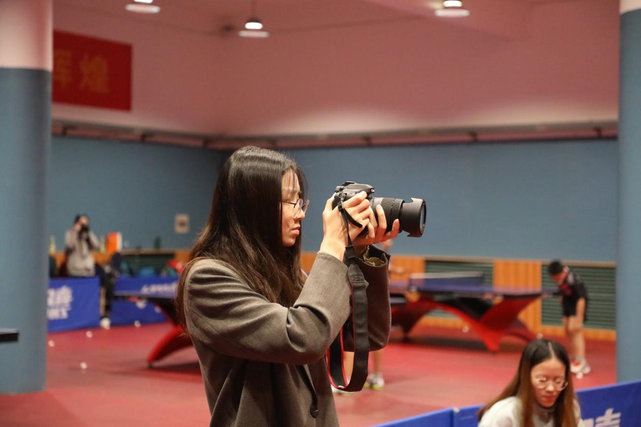 下午1点30,体育教育与人文学院副院长李金宝老师在球场外向同学们讲授了拍摄运动场景的技巧。他要求同学们珍惜进入运动队拍摄的机会,努力挖掘运动队背后的故事。随后,同学们在老师的带领下进入乒乓球馆。江苏乒乓球队于1958年11月建队,通过几代乒乓人的辛勤耕耘,已经发展成为36365最新线路检测中心竞技体育的一支骨干力量。场内的小运动员们两两组合练习攻球,按动快门,运动员的努力、拼搏都被同学们的镜头记录。