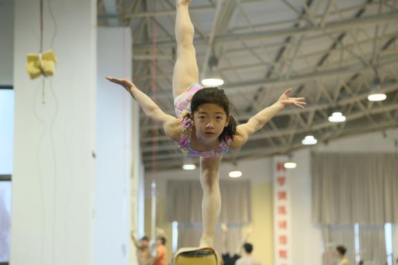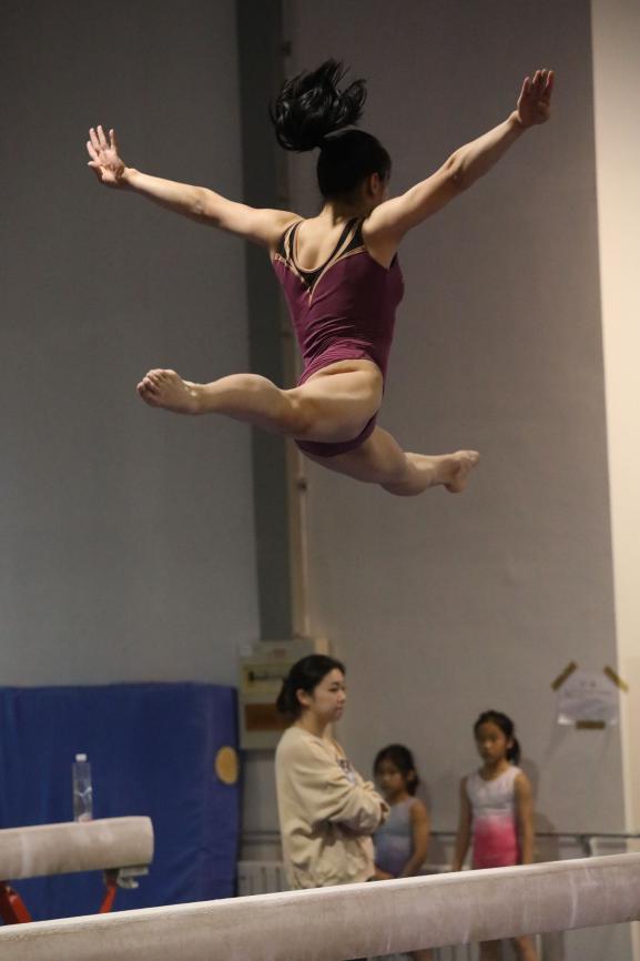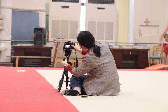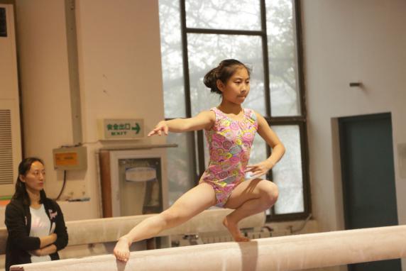 顺着楼梯走上两层便来到了体操室,一眼望去都是身着五颜六色体操服的小运动员,他们有的认真听从着教练的指导,有的自觉地安静训练,虽然时而会因为动作不完美或者失败而皱起眉头,但仍然坚持不懈,锲而不舍。当闭上眼睛,用耳朵感受时:是猛烈的冲刺跑,是响亮的踏板声,是稳健的落地音。这一幕幕充满努力和汗水的照片都被同学们用镜头一一记下,最终将变成最美好的回忆。