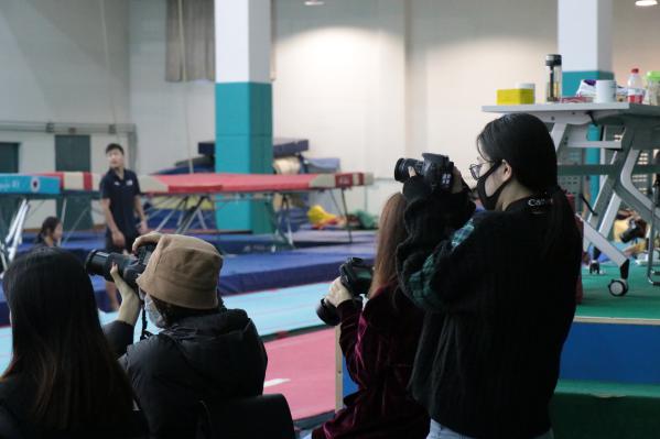 2020年11月19日,在专业李老师的带领下,同学们来到了“学训融合”纪录片拍摄活动第四站——体操蹦床馆。经过前几次定点拍摄活动,同学们都已经逐渐掌握拍摄技巧,能够快速进入认真拍摄状态,与此同时与运动员的交流也不断增加,这有助于同学们走进运动员,深入挖掘体育精神,为拍摄优秀纪录片奠定基础。