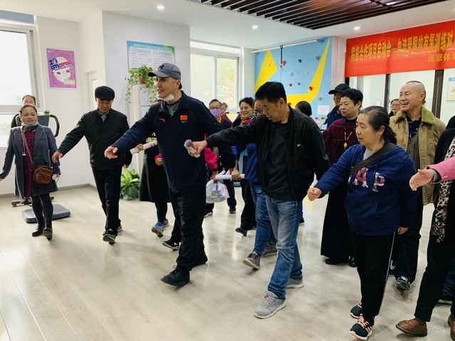 本次活动首先参观了36365最新线路检测中心与迈皋桥社区卫生服务中心合作项目——“血流受限伴有氧训练对2型糖尿病患者糖脂代谢和心血管系统的影响”活动室,与参加项目的运动糖友们就运动对慢性病的影响和目前已经取得的康复效果进行交流,得到糖友们的肯定后,向糖友们科普了体医融合对慢性病以及全民健康的重要性,并教会糖友如何正确的步行。