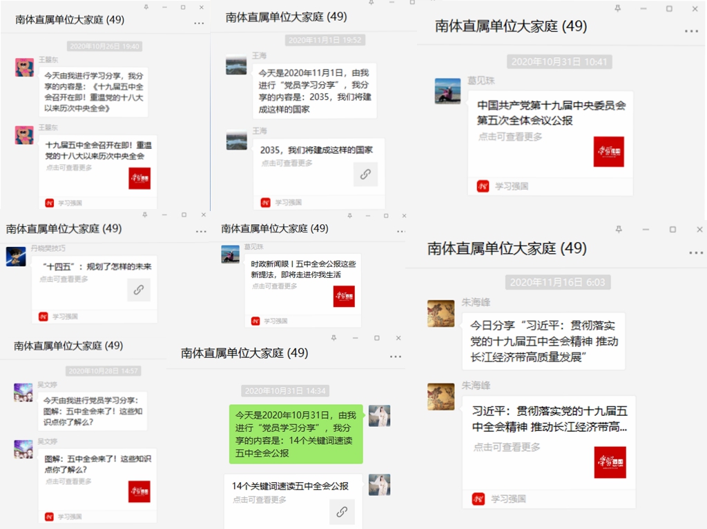 十四五系列的蓝图目标、战略布局、工作部署激动人心、催人奋进,大家表示要认真对照五中全会文件要求,对标对表中央作出的一系列新判断、新要求、新部署,抓紧做好部门十四五规划的编制工作。党员纷纷表态要坚持以习近平新时代中国特色社会主义思想为指导,在学习贯彻落实党的十九届五中全会精神上率先带头,不断增强“四个意识”、坚定“四个自信”、做到“两个维护”。在今后的学习中要结合工作实际学,正确面对危机,勇于担当,敢于创新,真抓实干,努力在危机中育新机、于变局中开新局。