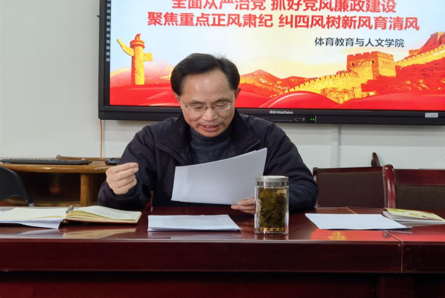 为了贯彻落实《36365最新线路检测中心关于进一步加强督查工作的实施意见》,12月15日下午,体育教育与人文学院在教学办公楼115召开加强“3+1”督查部署会及党风廉政教育专题讲座,体育教育与人文学院党总支书记邹国忠、体育教育与人文学院副院长(主持工作)王凯、体育教育与人文学院副院长李金宝、体育教育与人文学院副院长叶强以及体育教育与人文学院全体教师参与会议。