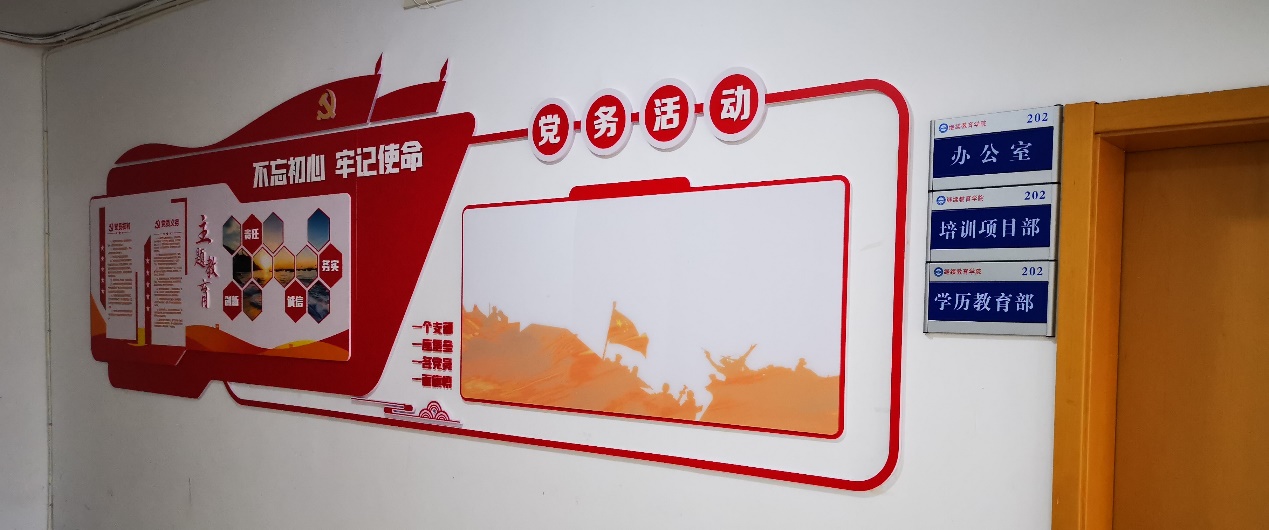 12月25日,继续教育学院积极巩固校园文化建设成果,以提高认识、强化落实为遵循,从营造具有特色的办公文化氛围做起,全面推进校园文化建设。学院在办公室外部公共区域布置宣传展示区,宣传展示学院党建工作、业务工作开展情况,让精神文化融入办公氛围,激发学院职工工作热情,也让来访的人员接受宣传教育,使得服务窗口宣传阵地建设得到进一步加强。
