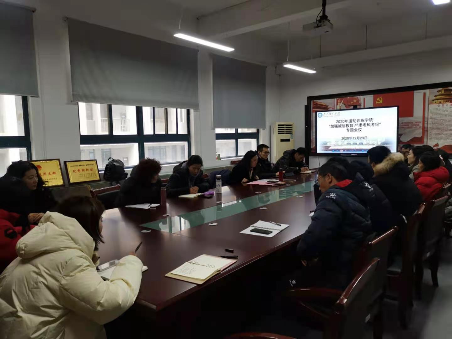 为进一步加强诚信教育,激励同学们端正态度、认真复习,严格遵守考试规章制度,营造优良考风、学风。12月29日中午,运动训练学院在315会议室召开各年级辅导员班主任工作会议。本次会议内容主要以“加强诚信教育,严肃考风考纪”专题会议及学生管理工作为主。会议由运动训练学院党总支副书记喻菊主持,学工办主任、所有辅导员及班主任参加此次会议。