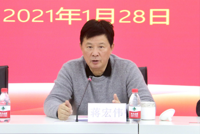 蒋宏伟在讲话中表示,展望2021年,学院发展仍面临着严峻挑战,当前探索学院疫情防控常态化下的发展道路具有重要现实意义。蒋宏伟对学院2021年工作提出具体要求。一是要以备战全运会为中心全面开展工作,在距离全运会开幕的二百多天时间里,要切实增强紧迫感和危机感,全力以赴做好备战工作,确保夺金目标任务顺利完成。二是要坚持贯彻“文化先行”的发展理念,希望学院全体“爱院如家”,进一步丰富文化内涵、提振精神风貌,讲好学院故事、传播学院正能量。三是要发挥好学院国家平台效应,努力擦亮“国字号”招牌,进一步推进国际网联国家金牌训练基地认证工作。四是坚持走好国际化、专业化、可持续发展道路,创新手段、整合资源,为学院国际办学项目运营发展注入长久生命力。五是要主动适应发展新格局,深入贯彻新发展理念,切实加强工作前瞻性、思考全局性、谋划战略性布局,以新气象新担当新作为开创工作新局面。蒋宏伟院长还特别强调要做好运动队春节封闭训练期间相关保障工作,并衷心祝愿学院在新的一年各项事业蓬勃发展,学院全体干部职工工作顺利、安康幸福。