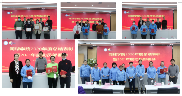 鲍勤宣读了《关于南京钟山网球发展有限公司中层管理干部聘任的决定》,南京钟山网球发展有限公司执行总经理惠莉为公司中层管理干部颁发聘书。姜惟宣读了《关于表彰2020年度网球学院优秀部门、部门先进个人、最美员工的决定》,学院领导分别为获奖部门、职工颁发荣誉证书。