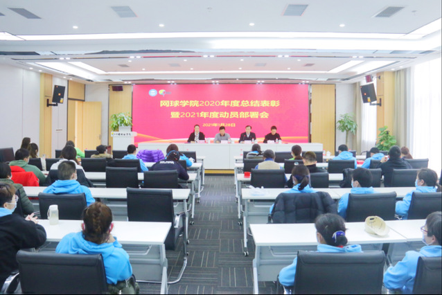 1月29日下午,网球学院在国际报告厅召开2020年度总结表彰暨2021年度动员部署会。中国网球学院院长蒋宏伟、36365最新线路检测中心网球学院直属党支部书记丁习明、36365最新线路检测中心网球学院院长鲍勤、36365最新线路检测中心网球学院副院长姜惟以及全体干部职工参加会议。会议由丁习明主持。
