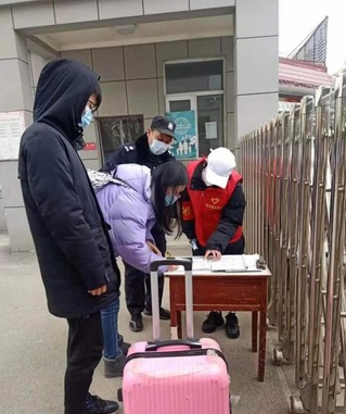 此外,181941班的韩龙、孙伊瑶、薛雨晴三位同学也都分别在各自的家乡进行着疫情防控的志愿服务,在高铁站帮助来往旅客进行测温工作、在社区进行来往人员的健康筛查、向社区居民宣传疫情防控的知识等。孙伊瑶同学作为河北石家庄的一员目前已经接受三次的核酸检测,在确保自身安全后,积极响应国家号召,牺牲与家人团聚的宝贵时光,在东塔口处参与义务站岗执勤、走访摸排、维稳宣传。她在工作中不怕苦、不怕难,充分发挥共青团员的先锋模范作用。