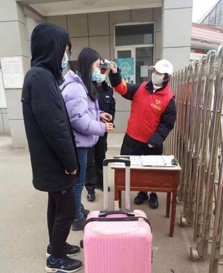 董欣洋同学目前身处天津市武清区京滨工业园凤和孔雀城,她平时就热心公益事业,返乡之后她积极报名,主动参与社区志愿服务工作,熟练掌握疫情防护知识和防护措施,每日早晨9点到达志愿岗位,从不缺席,协助配合测量进出人员的体温,详细做好返程人员登记工作,为小区住户筑起牢固的防疫关卡。