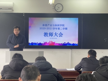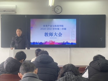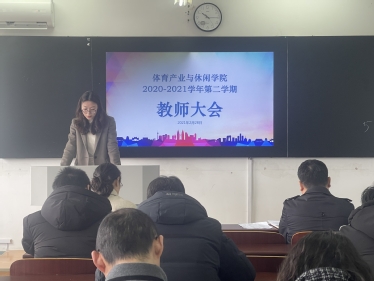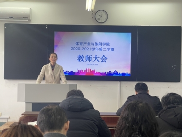 2021年2月28日上午,体育产业与休闲学院在仙林校区教学楼401教室召开新学期全院教师大会,学院全体教师出席,会议由院长于翠兰主持。