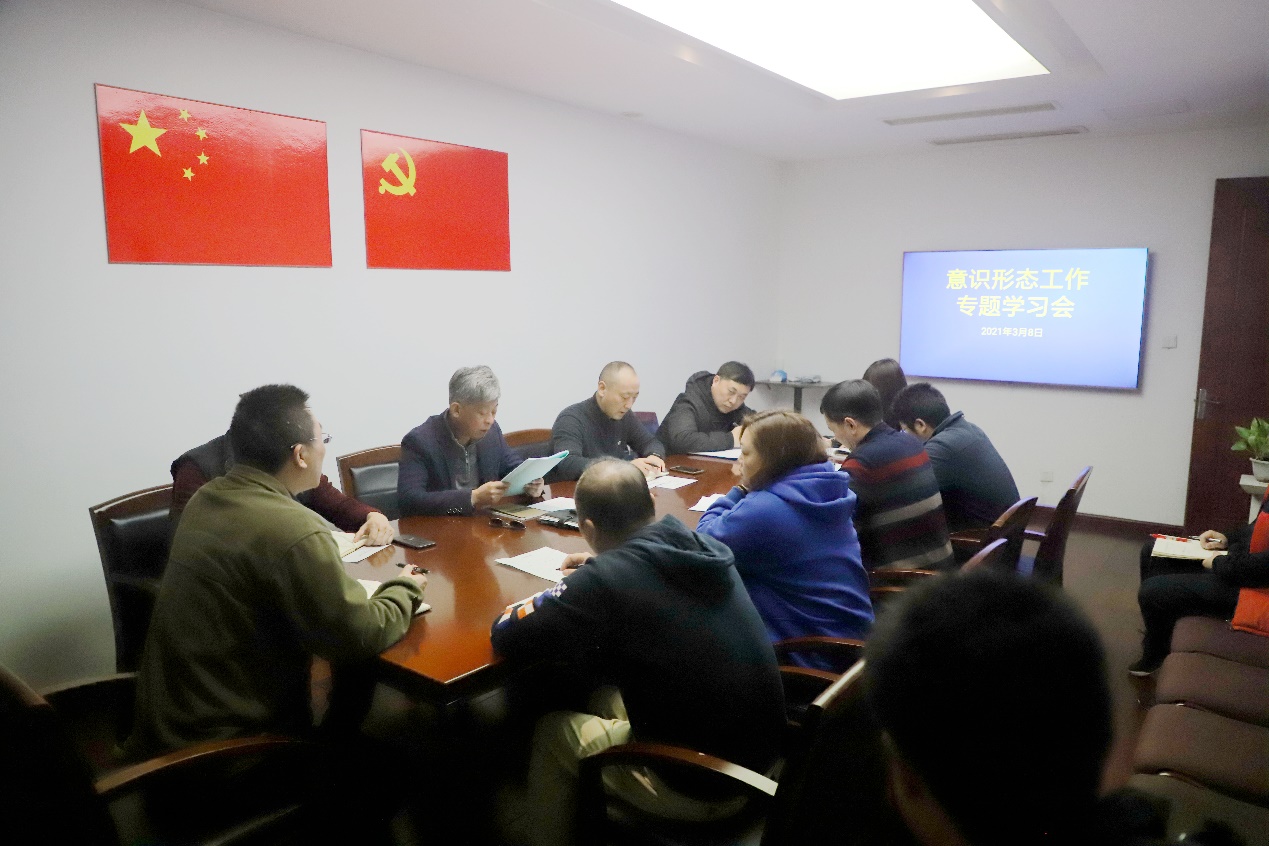 3月8日上午,后勤党总支组织召开意识形态工作专题学习会议,后勤党总支委员、处级干部、党支部书记及各科室负责人参加会议。