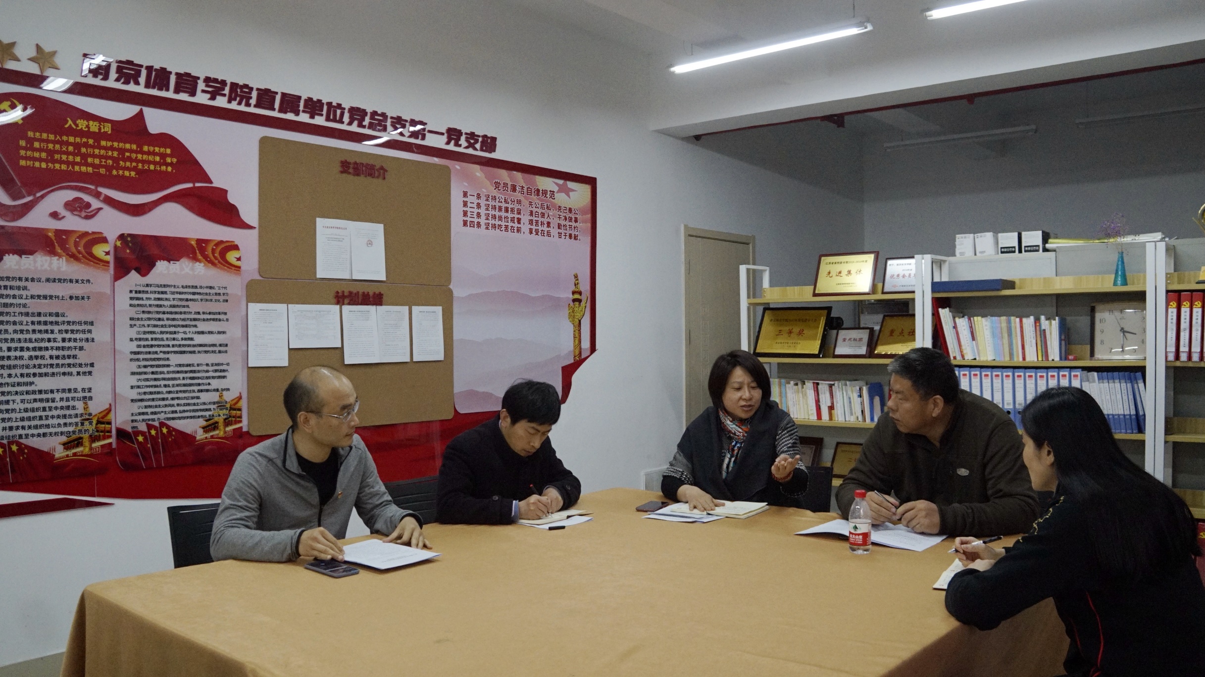 3月11日上午,直属单位党总支5位委员在图书馆105室研讨党史学习教育工作,研讨会由直属单位党总支书记葛见珠主持,全体总支委员参加会议。