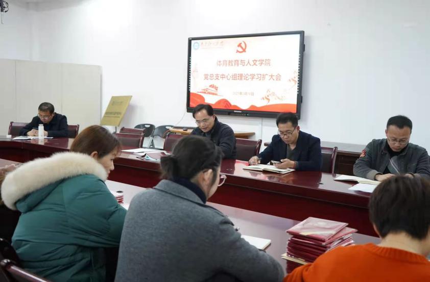 3月16日下午,体育教育与人文学院党总支在教学办公楼115举行中心组理论学习。党总支书记邹国忠、副院长(主持工作)王凯、副院长李金宝、副院长叶强,各支部书记及科级以上干部参加学习。会议由邹国忠书记主持。