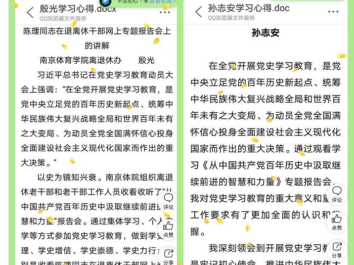 通过收看网上专题报告会,老同志们在微信群里分享交流了党史学习心得。大家纷纷表示:接受党史学习教育,做到学史明理、学史增信、学史崇德、学史力行,进一步认识到在这历史的重要时刻,学习党的百年历史的重要性。学习重温党的百年历史,我们从中汲取智慧和力量,坚定党的历史自信,坚定中国人民和中华民族的未来自信,更好地推动新时代中国特色社会主义建设事业,更好地团结带领全国各族人民决胜全面建成小康社会、踏上建设社会主义现代化强国新征程。