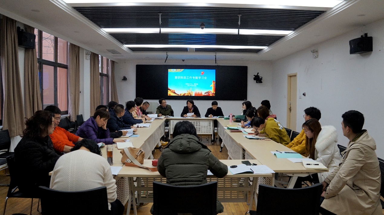 葛见珠引用习近平总书记提出的意识形态三个事关,强调意识形态工作的极端重要性。葛见珠领学了意识形态工作的指导思想与基本任务、学校贯彻落实意识形态工作责任制情况报告等重要内容。