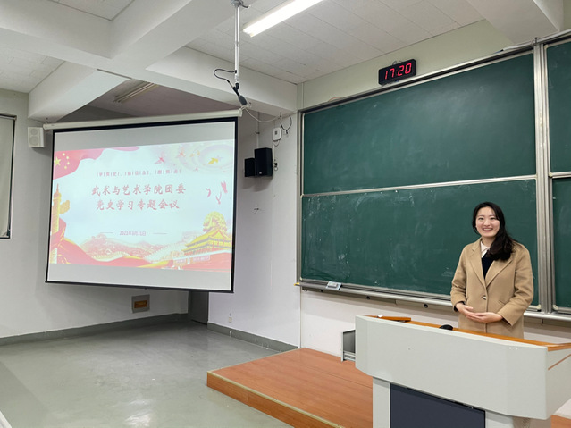 为深入学习贯彻习近平总书记在党史学习教育动员大会上的重要讲话精神,紧密结合校团委的部署、扎实推进党史学习教育工作,3月31日,武术与艺术学院团委召开党史学习教育专题会议,会议由院团委书记周晓旭主持,各年级团干部与相关学生参加会议。