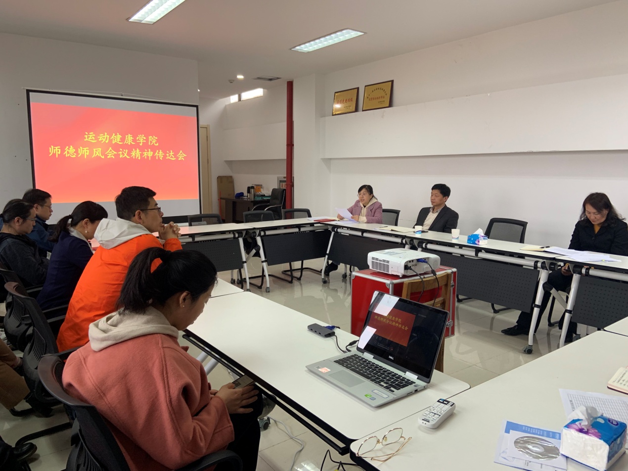 4月2日中午,运动健康学院在图书馆415会议室召开会议,传达师德师风建设会议精神,院长汤强、党总支副书记石红霞出席会议,学院全体教师参加会议。会议由副院长赵彦主持。