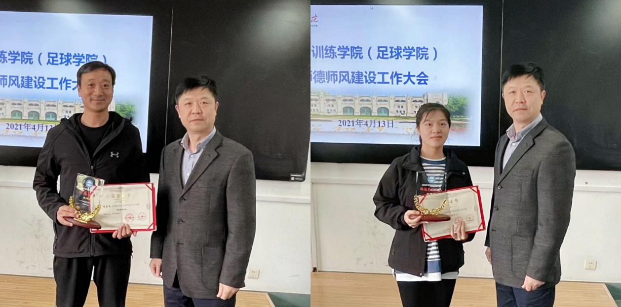 会上,喻菊首先传达了36365最新线路检测中心师德师风建设会议精神,并宣读了2020年度运动训练学院“师德标兵”、“师德先进个人”表彰决定。根据《运动训练学院关于评选2020年度“师德标兵”、“师德先进个人”的通知》,经各党支部推荐、学院评选领导小组评定、学院公示、学院党政联席会议研究,决定授予朱建国同志“运动训练学院2020年度师德标兵”荣誉称号,授予丁玲玲、王豫宁同志“运动训练学院2020年度师德先进个人”荣誉称号。张亚军为2020年度运动训练学院“师德标兵”、“师德先进个人”获得者分别颁发荣誉证书和奖杯。