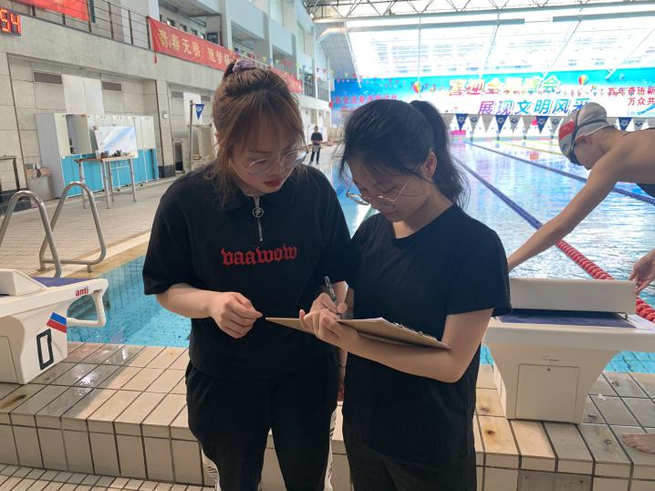 4月14日,来自体育教育与人文学院的李馨雅、龚蕊、韦雅玥、张宁丽、刘兰共五名志愿者,协助江苏省花样游泳队(以下简称省花泳队)顺利完成中华人民共和国第十四届花样游泳资格赛暨2021年全国花样游泳冠军赛体能测试。