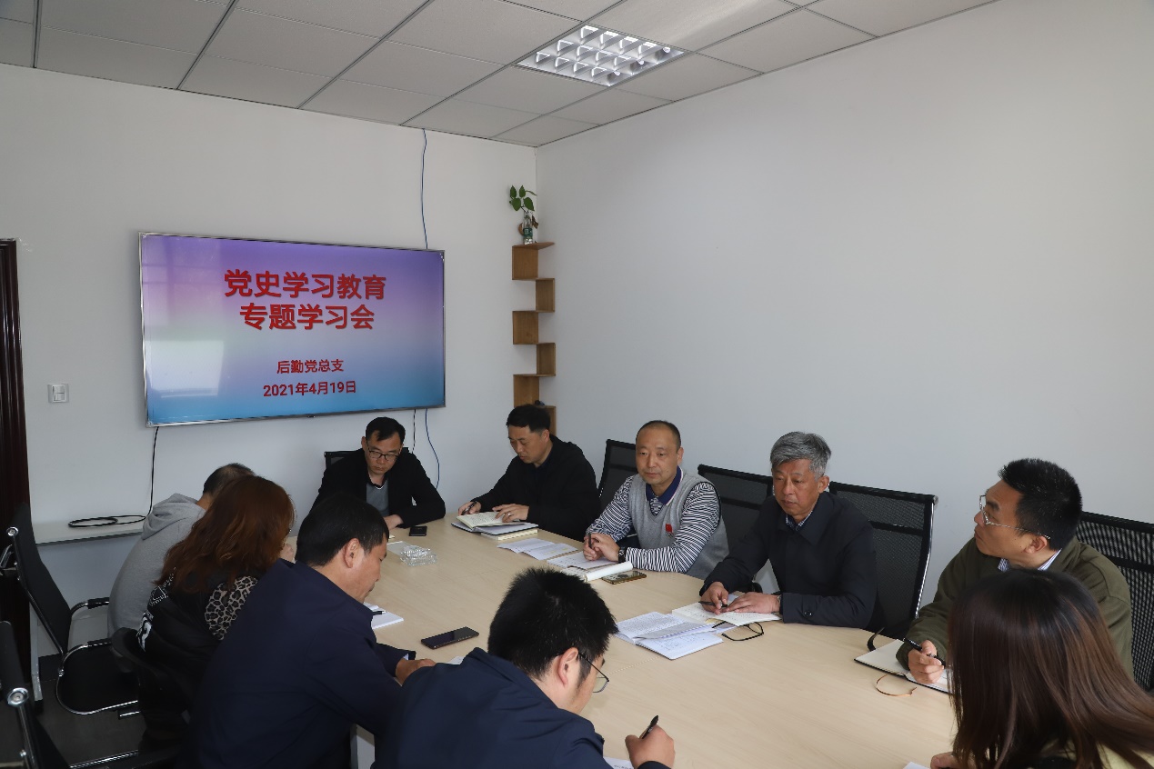 4月19日,后勤党总支在基建科会议室召开党史学习教育专题学习会。后勤党总支委员、处级干部、党支部书记及科室负责人参加学习。