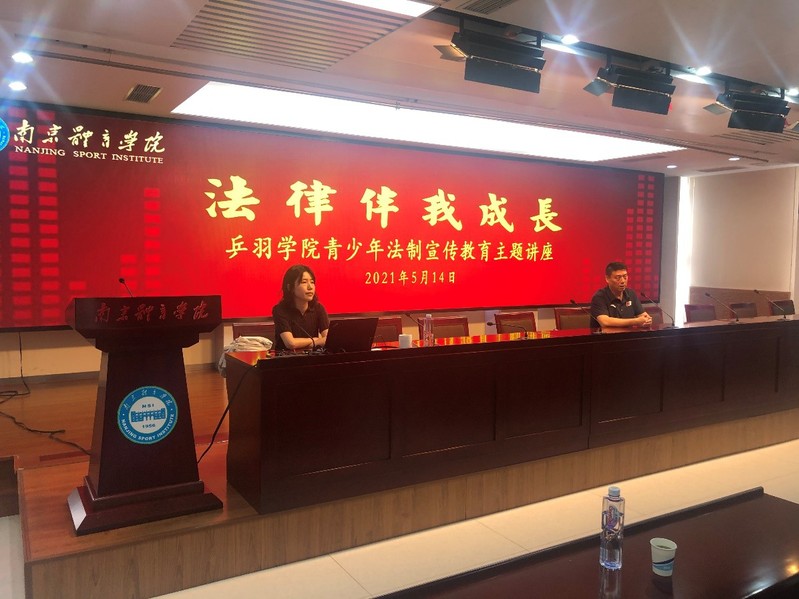 为配合学校开展的“青少年法律宣传教育周”活动,增强青少年运动员的法制观念和安全意识,养成“学法、懂法、守法”的法治意识,守护校园安全,5月14日晚,乒羽学院特邀玄武区人民法院刑事庭孙艺飞法官,为青少年运动员举办了一场主题为“法律伴我成长”的法制教育讲座,乒羽学院部分管理干部和14周岁以上的运动员参加了讲座。