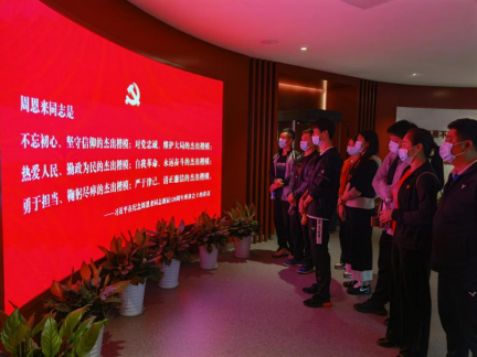 参观结束,全体党员站在党旗下,面对鲜艳的党旗,重温入党誓词,再一次庄严地向党承诺,表达为党和人民的事业奋斗终身的决心,决心以实际行动践行对党的承诺,永葆共产党人的纯洁性,为党旗增光添彩。