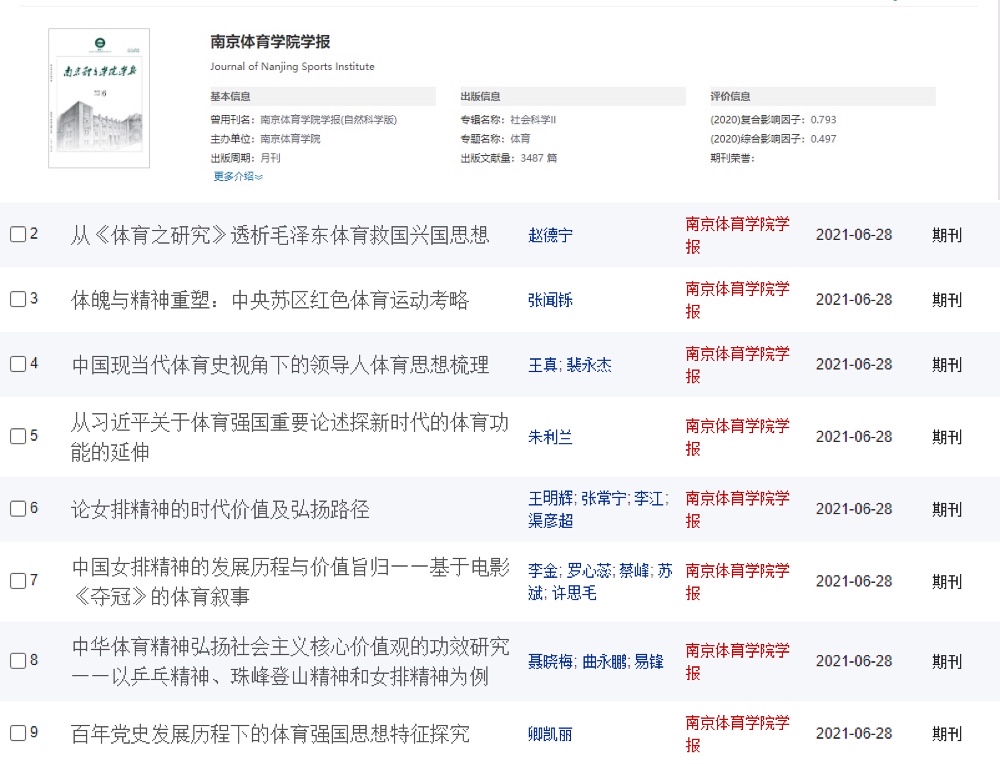 编辑部在该栏目中精心组织了8篇专题文章,其中既有追溯中华体育精神源头的《从<体育之研究>透析毛泽东体育救国兴国思想》《魂魄与精神重塑:中央苏区红色体育考略》,又有《从习近平关于体育重要论述探新时代体育功能的延伸》,更有以现役中国女排主力队员张常宁为通信作者撰写的《论女排精神的时代价值与弘扬路径》。8篇作品作者分别从不同视角对中华体育精神进行了溯源与理论梳理。8篇文章经过编辑部成员的精心组织策划与认真编校,现已呈现在中国知网《36365最新线路检测中心学报》特定页面,供广大读者阅读与下载。