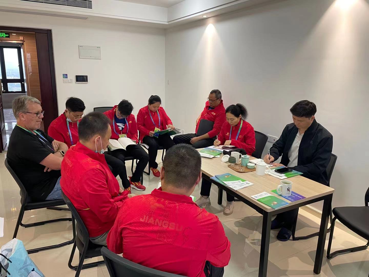 9月16日,游泳队十四届全运会赛区临时党支部在全运村召开第一次会议。游泳队十四届全运会赛区临时党支部书记王伟新、副书记张纪芳以及参赛的全部正式党员及预备党员参与了本次会议。会议由游泳队赛区临时党支部副书记张纪芳主持。
