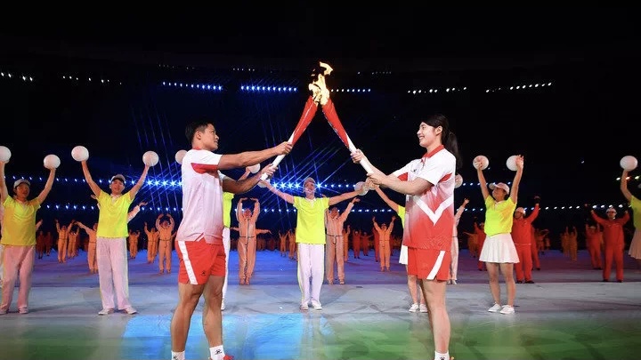 9月15日20时,中华人民共和国第十四届全国运动会在陕西省西安市开幕。建党百年之际,中国健儿在东京奥运满载而归,十四运再展雄姿。来自宝塔山的圣火熊熊燃起,昭示着十四运、北京冬奥必定成功,体育强国梦必然实现。开幕式上,江苏队亮点颇多:张雨霏担任火炬手,邱健担任旗手。