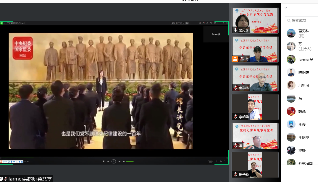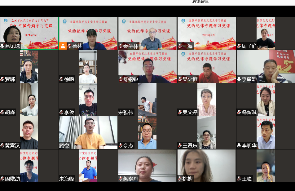 9月29日,直属单位党总支通过腾讯视频会议在线开展了党史学习教育党的纪律专题学习暨“纪律大宣讲”,会议由总支书记葛见珠主持,直属单位所有党员参加会议。