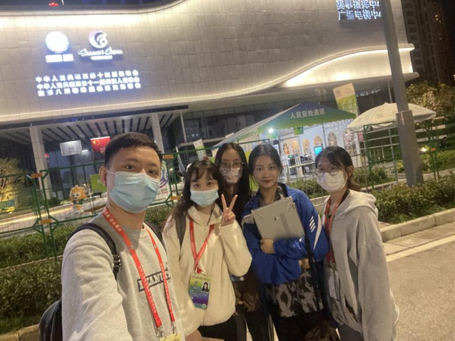 李冉冉:感谢老师的信任让我有幸参与到第十四届全运会的工作中。我很珍惜这段历时17天的实践经历,也在这段时间里收获颇多。实践出真知。这次的实践,让我体会到媒体人的职责和让我感受了真正的新闻现场。在完成工作的同时我也意识到自己还有很多不足,在接下来的一学年我会潜心学习,努力提升自己的专业能力。最后,想感谢一下在全运会期间帮助过我的媒体老师和带队老师、相互关照的同学们以及接待我们的所有工作人员。如果有机会的话希望能在2025年相约粤港澳。