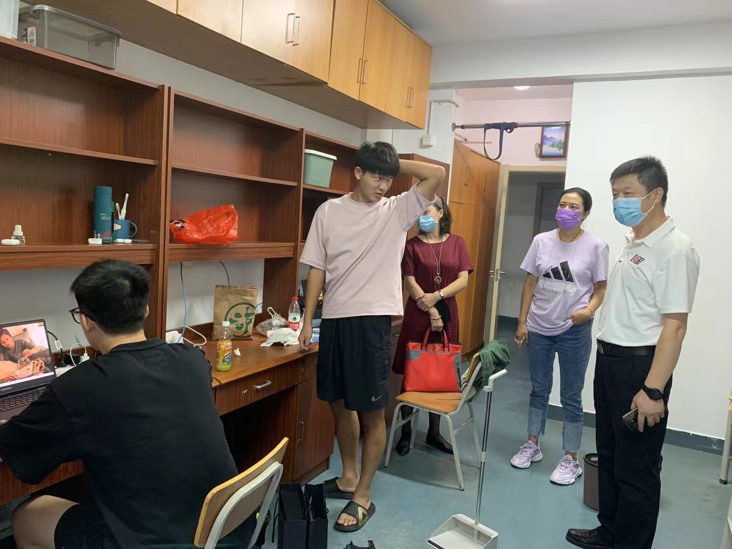 10月9日,运动训练学院2021级新生如期报到。为深入了解学院新生开学报到情况,进一步做好疫情防控常态化下新生宿舍管理工作,9日下午,运动训练学院党总支书记张亚军、副书记喻菊、学院办公室主任江秋寒走进新生宿舍,走访看望学院2021级新生,并对新同学的到来表示热烈的欢迎。
