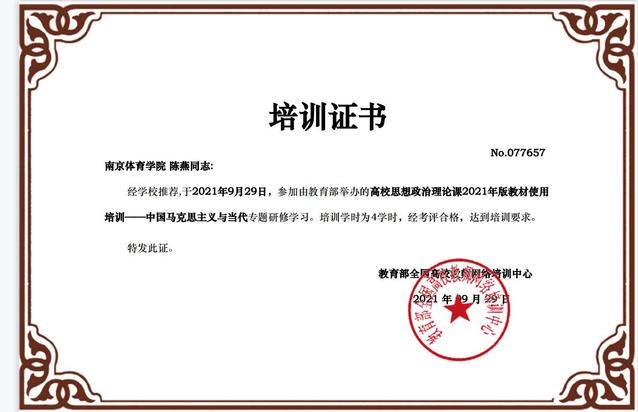 《中国马克思主义与当代》教材培训证书