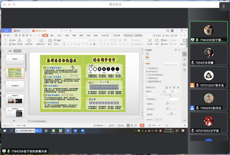 记者团副团长、摄影部部长张宁丽给大家介绍了相机不同模式的区别、摄影的基础知识、以及拍大合照时要注意的细节,让大家对摄影有了更深层次的认识。