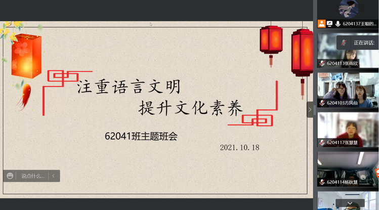 用语文明对整个社会风气的提升意义重大。为全面提高大学生的思想道德素质,养成良好的文明行为习惯,学院各班级相继开展“注重语言文明 提升文化素养”主题班会。主题班会的开展提高了同学们的文明礼仪素养,营造了文明和谐的校园氛围,促进了校园精神文明建设。