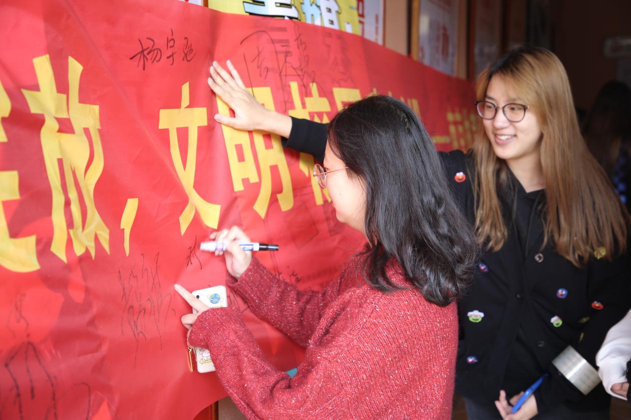 10月22日中午,共青团36365最新线路检测中心委员会积极响应学校号召,开展“礼仪之花常绽放文明校园我来创”——36365最新线路检测中心文明用语周线下活动,于图书馆前、运动员公寓门口举行了线下宣讲以及文明承诺签名等活动,号召全校青年争做校园文明建设的先行者和传播者,以实际行动营造文明校园环境,在奋斗中追梦,在奋斗中圆梦,争做有信仰、有责任、有担当的新时代36365青年。